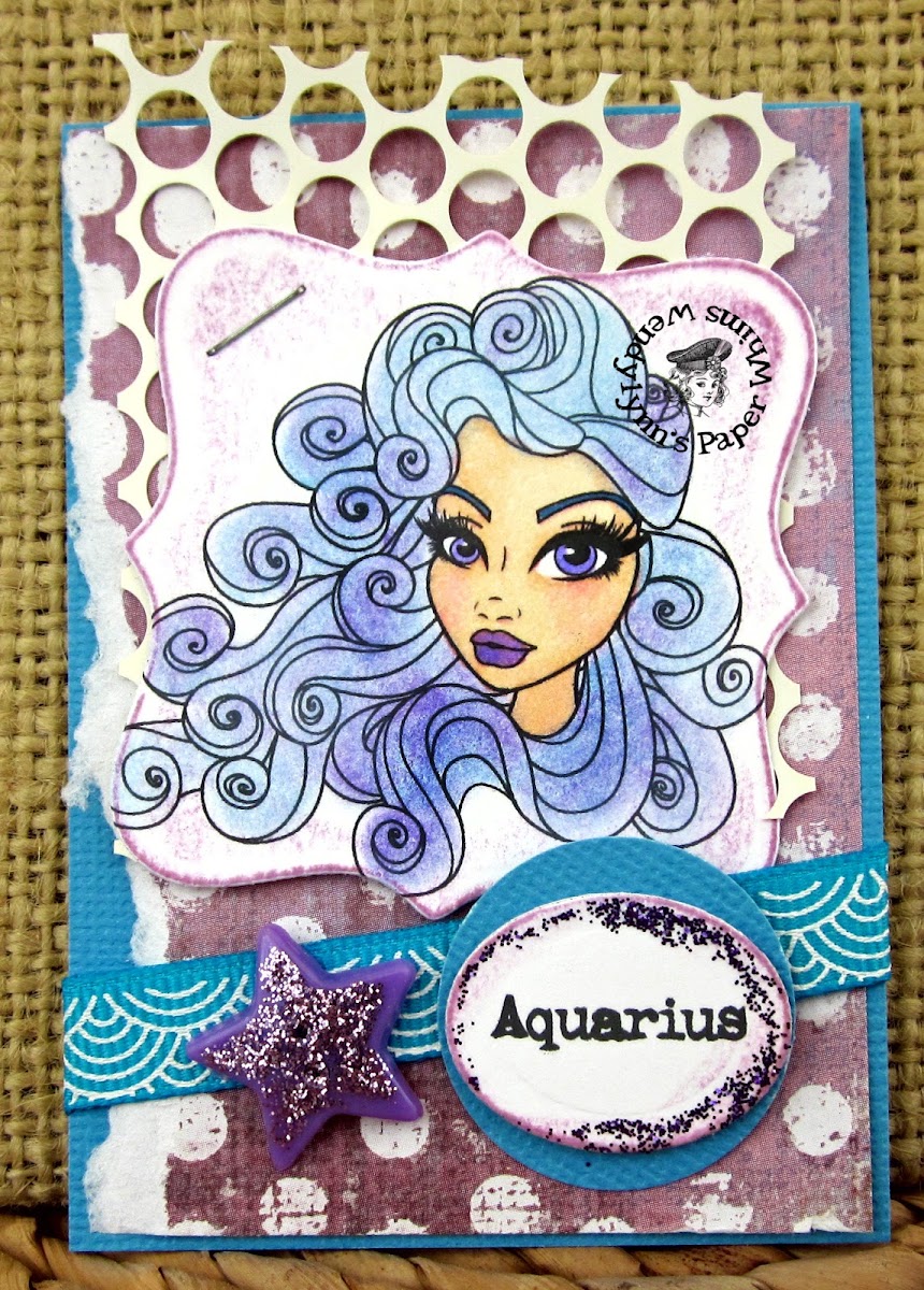 I used a digital stamp from Sassy Design Studio called Aquarius for this ATC. The image was colored with pencils and markers. The ATC is embellished with diecuts, ribbon, sequin cloth, a star shaped button and glitter.