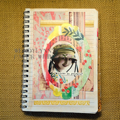 I used an image from Gecko Galz (Colorful Cuties) for this journal page. The project is layered with design paper scraps and a diecut shape.
